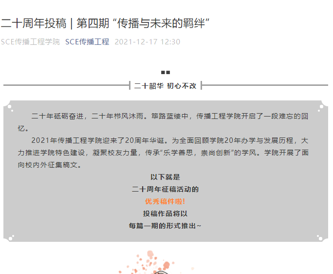 二十周年投稿丨第四期 “传播与未来的羁绊”