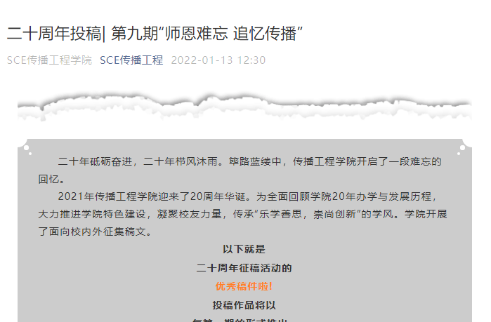 二十周年投稿丨第九期“师恩难忘 追忆传播”