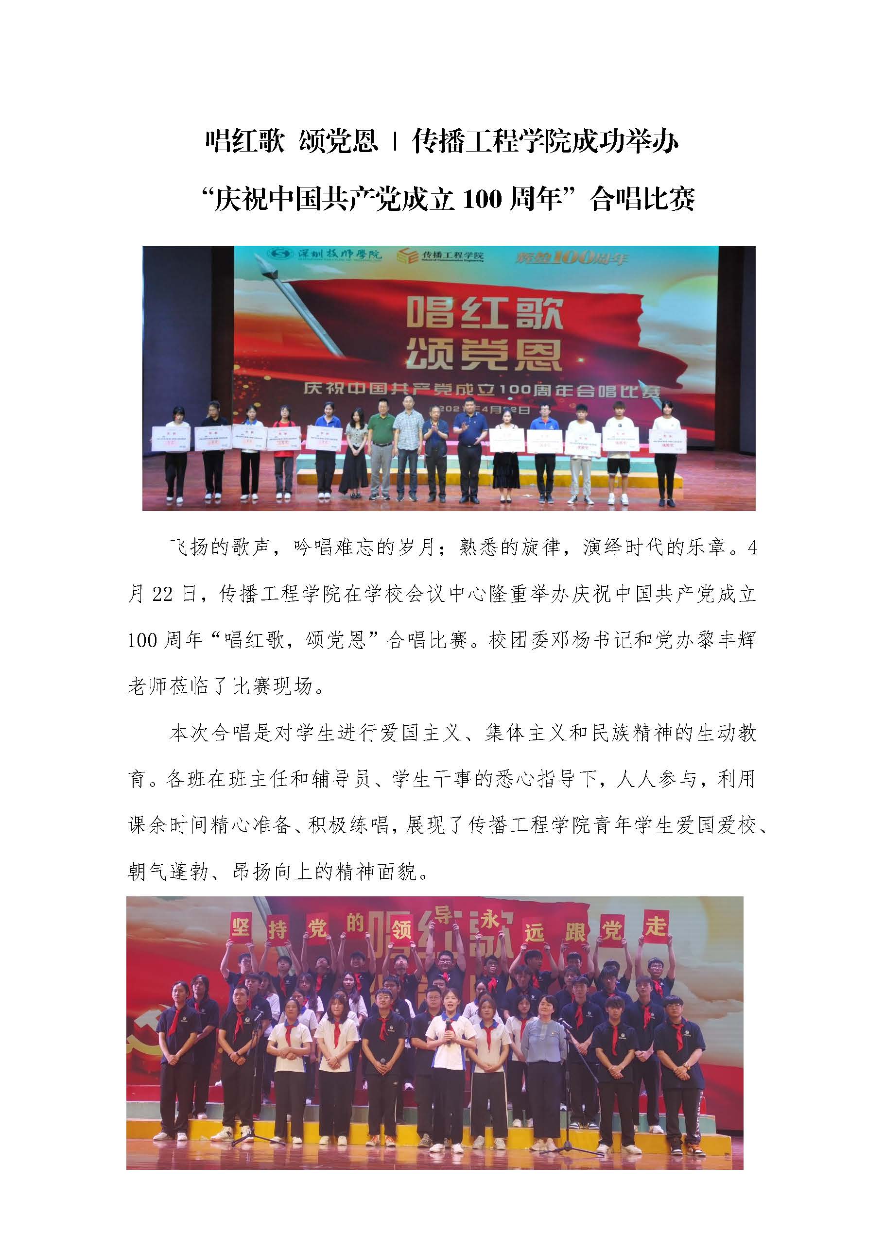 传播工程学院成功举办“唱红歌,颂党恩”合唱比赛