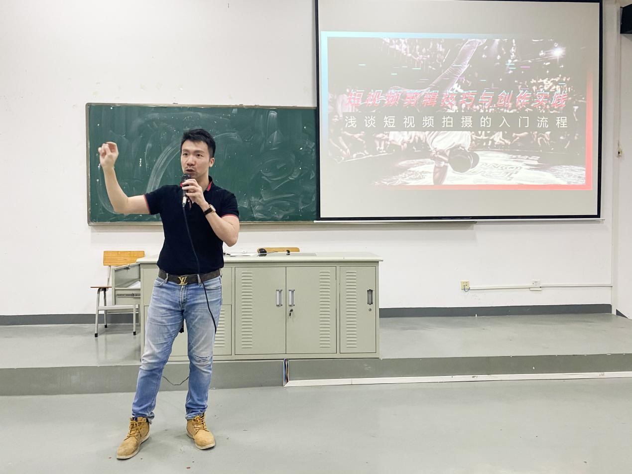 首秀出彩 作为俱乐部活动首秀,2021年4月6日17:00-18:20,俱乐部在校教学楼东601阶梯教室开设了一场面向全院学生的公开讲座《短视频剪辑技巧与创作实践——浅谈短视频拍摄的入门流程》。抖音短视频拍摄达人星sir(陆嘉诚)先生做了精彩的分享。星sir从实际出发,让大家使用人手必备的手机作为拍摄的制作工具,结合理论与实践,用丰富的案例为大家讲解短视频的创作思路与剪辑技巧,在一问一答中启发学生的短视频创作能力。