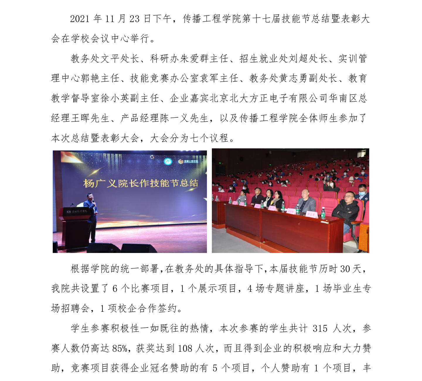 传播工程学院第十七届技能节总结暨表彰大会隆重举行